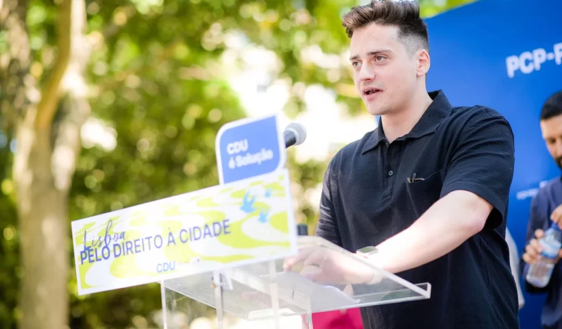 Activistas e candidatos da CDU, incluindo João Ferreira, candidato à presidência da Câmara de Lisboa, Anna Almeida, candidata à presidência da Junta de Freguesia de…