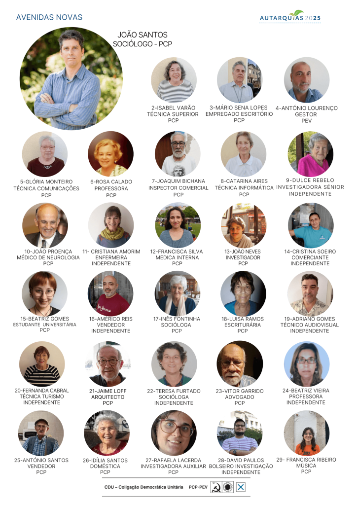 “Aceito este desafio com a convicção e o compromisso de contribuir para que as Avenidas Novas, tenha uma Junta de Freguesia que sirva os seus fregueses. Através desta candidatura mostrar, mais uma vez, quem está do lado da população e está consciente dos seus problemas e ansiedades. Com esta candidatura, é possível promover uma melhoria significativa no desenvolvimento económico, social, cultural e desportivo da população e na proteção dos direitos dos trabalhadores da autarquia para que haja melhores condições e qualidade de vida para todos. Com Trabalho, apresentamos medidas para Mais e Melhor Ambiente, e com isso Melhor Qualidade de Vida. Com Honestidade, estamos ao lado da população para Mais e Melhor Mobilidade. Com Competência, com projetos concretos para a Cultura e Desporto. A equipa que se apresenta a estas eleições é composta por homens e mulheres com confiança e com soluções para uma freguesia onde vale a pena viver, uma cidade para todos e para isso contamos com o vosso Voto na CDU”.